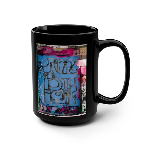 "Ambition" Graffiti Street Art Ceramic Mug — Colorful Urban Collage (15oz)